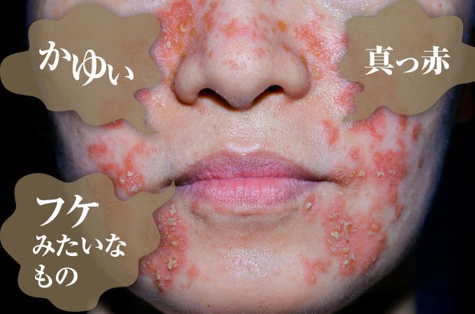 炎症を起こして荒れた肌を