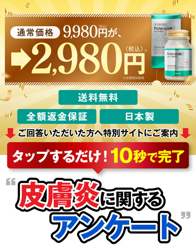 10年ほど前から皮膚炎に悩んでいて、皮が剥けたりヒリヒリすることも多々… 内服の薬はこれまで聞いたことがなくとても期待してます!皮膚炎にに悩む人や再発してしまう人に教えたいです!※個人の感想です※画像はイメージです※弊社から依頼をし、頂いたコメントを編集して掲載しております